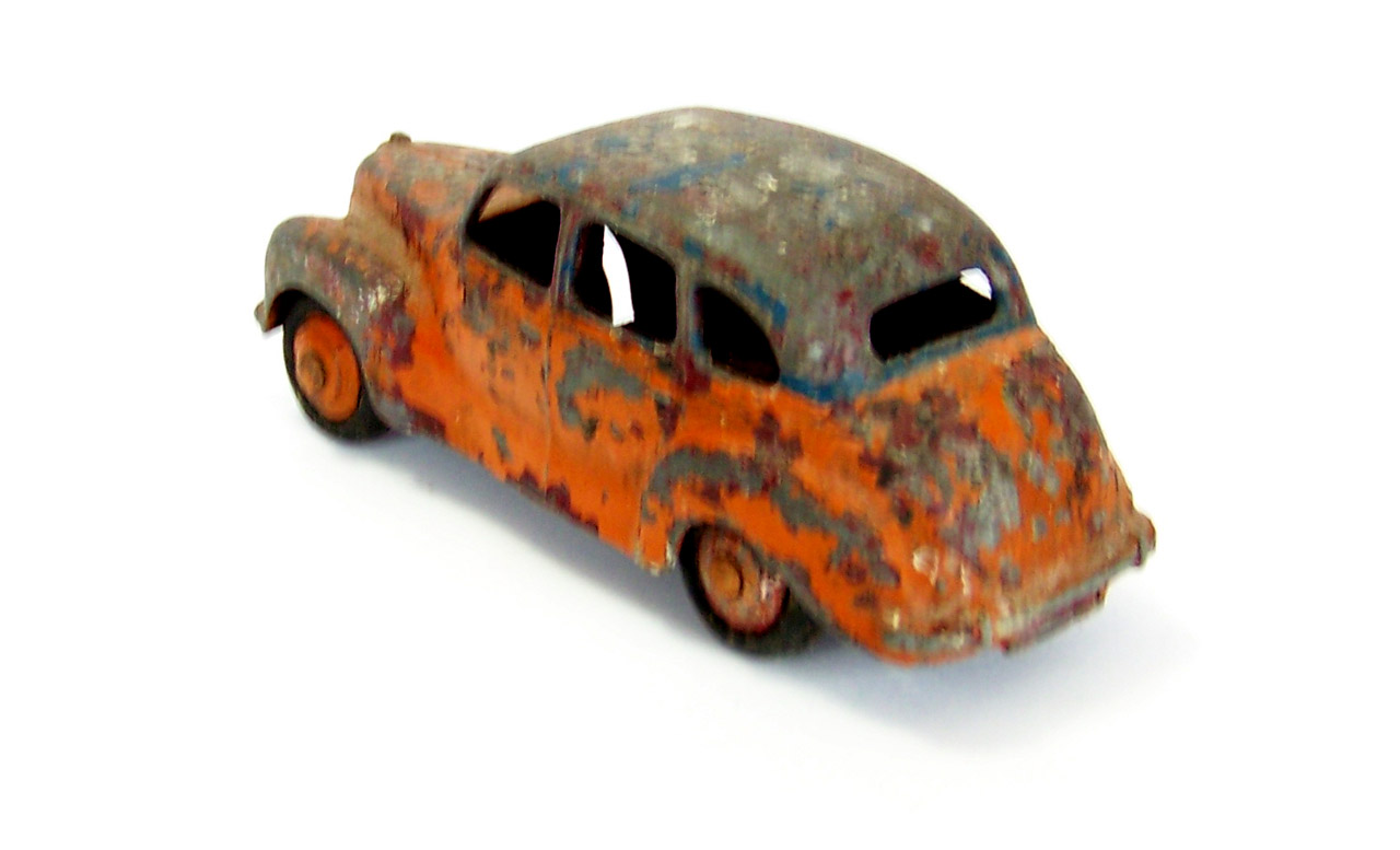 Over-painted but solid with one bent axle. Simple strip down and paint but the rear riveting pillars are a bit thin so drill carefully. This is a 40d as there is no DEVON printed under the roof and the printing on the base is small. Restored to near original colors.