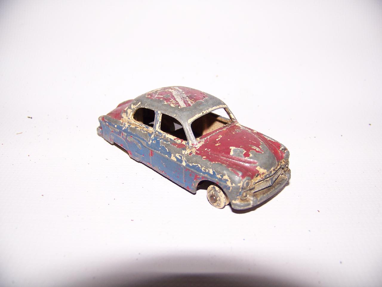 In very poor condition, overpainted and huge paint loss, rusty chassis, windscreen pillar missing, bent roof.