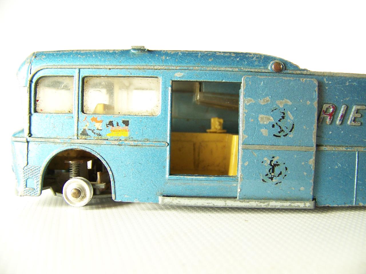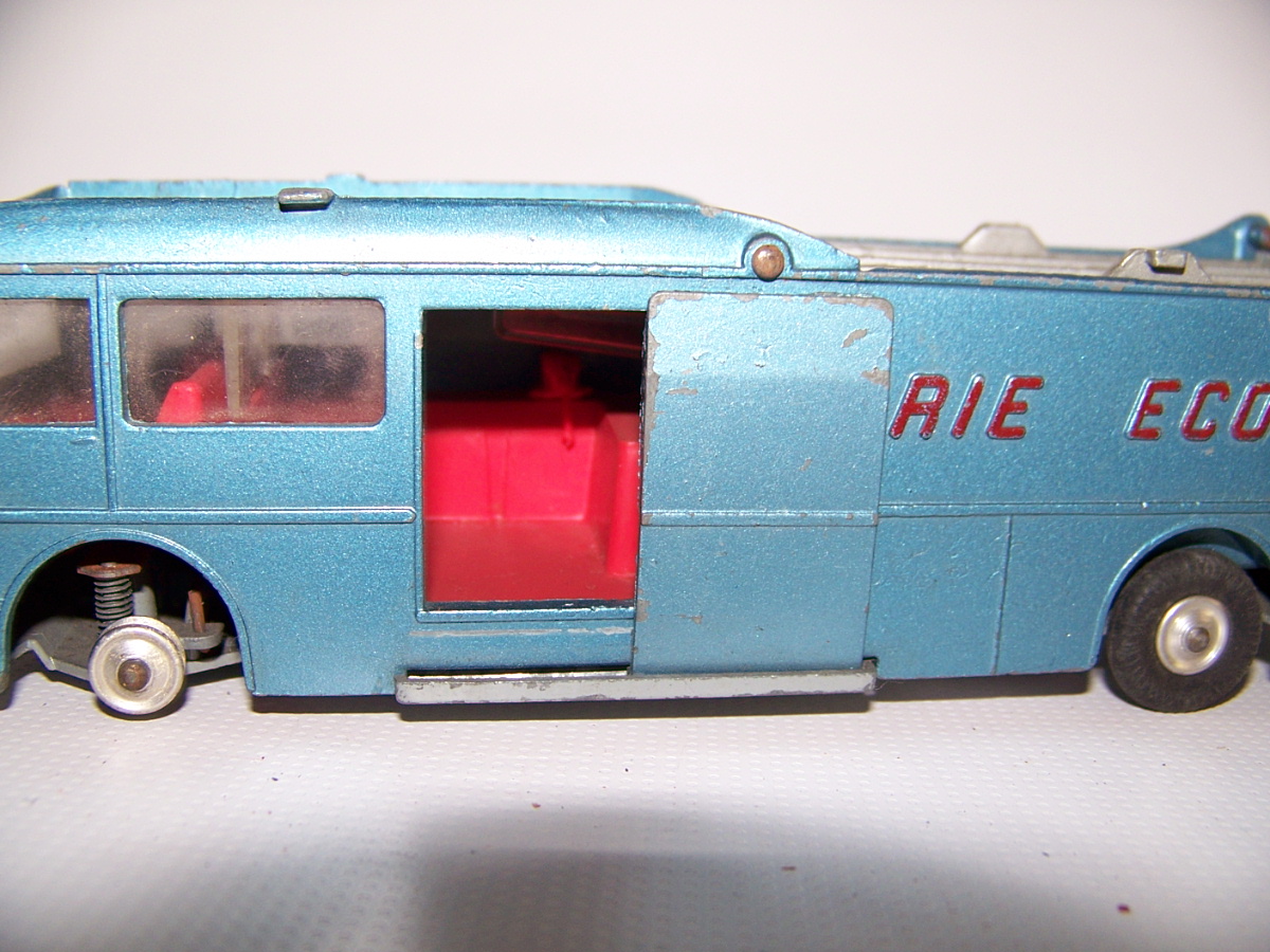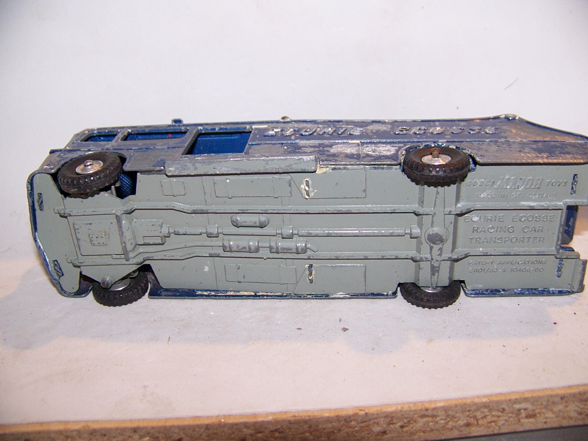 A mammoth project as this is the first of this size and a model in such a poor state. Some damage to the bodywork, window shell broken and missing bits, no rear ramp, full of dirt, no vice in the workshop, and a bad paint job. So a good clean up and all paint was stripped finishing with caustic soda and a fine wire brush on my drill. A good primer and two top coats before trial assembly. A final coat or two will be added as necessary. The front steering was removed by drilling out the rivet head, all components will be cleaned and lubricated before reassembly. The axle plate will be held in with screws should it ever be necessary to rebuild this model again. The Chassis was reassembled after cleaning and polishing all the parts. The front springs were re-tensioned before assembly and the rear springs were carefully rotated 180 degrees. A little WD40 to lubricate and all set to go. The broken windscreen and badly stained plastic interior will be tackled next. Ecurie Ecosse History (Team Scotland/images/Ecurrie Ecosse Chassis Restored.jpg)