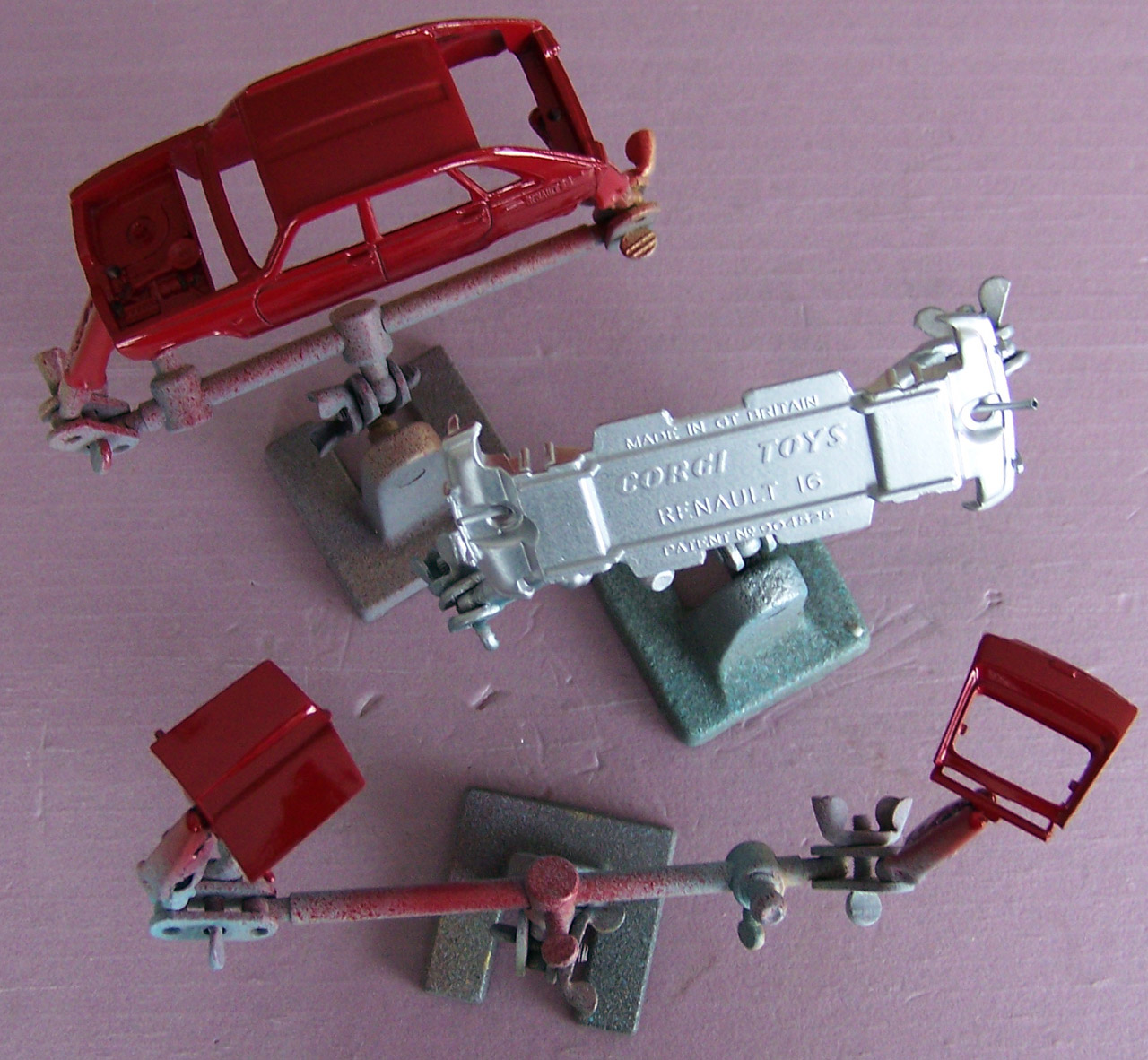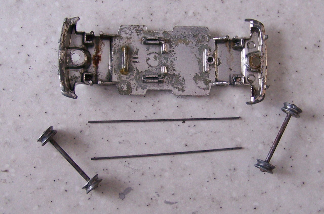 Ready to restore. Poor paintwork but otherwise complete and working. On stripdown the inside was seen to be quite corroded but salvageable. The tires hardened and hubs rusted to the axles. The springs were removed, axles removed and cleaned. The rear window was a clip in but care was taken in removal. Holes for rivets were in pillars that are quite thin so I drilled right through with a slightly oversized bit so that the tapping would not split the pillars. All cleaned ready for a respray, weather permitting currently -15C. Weather now above freezing so outside to primer and two top coats. Ready now for detail and assembly. Painted the engine bay and reassembled. A few paint chips on the way but touched up. All good and working, now for the box. And finally the box. Not the original design. Maybe sometime I will do the transparent box./images/1.jpg)