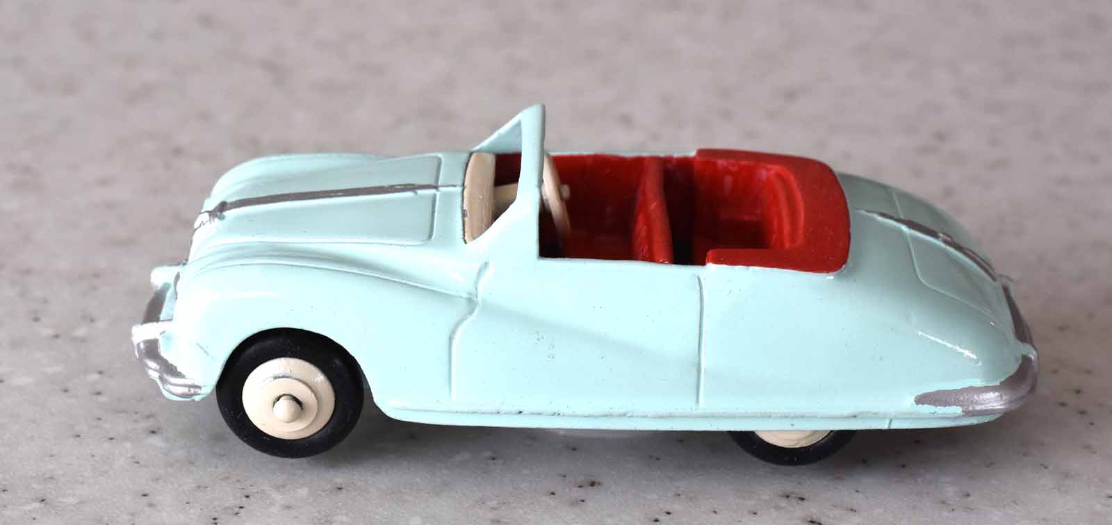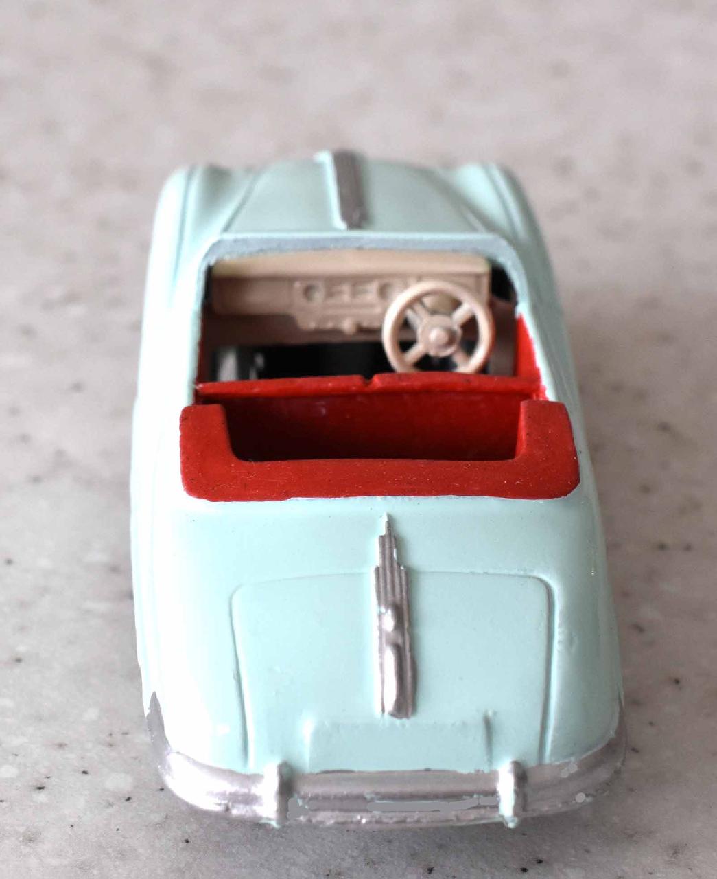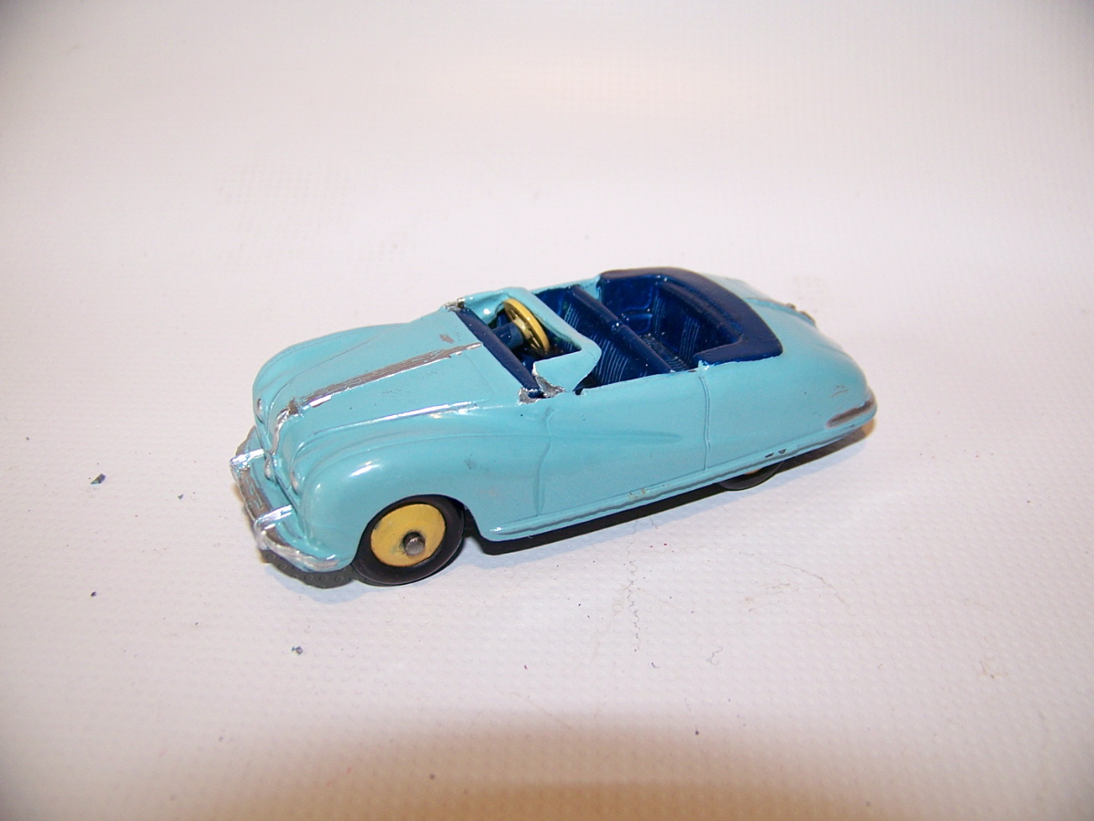 This model was badly over painted and windscreen frame bent. Once the paint had been stripped there was some chipping to the bodywork and casting marks. However the rest was quite sound and worthy of a restoration. The original colors were light blue, red trim and cream hubs. The one thing that I found interesting was the dashboard that was quite detailed and resembled the original model very well. My shaky hands show quite well on the detail work but a satisfactory result. PS Base plate to be finished with clear coat/images/1.jpg)