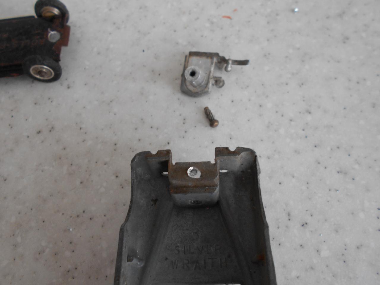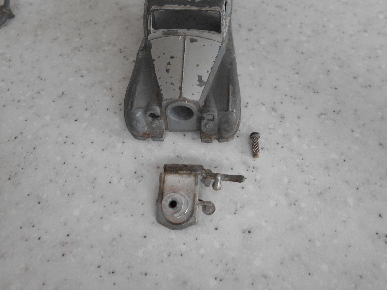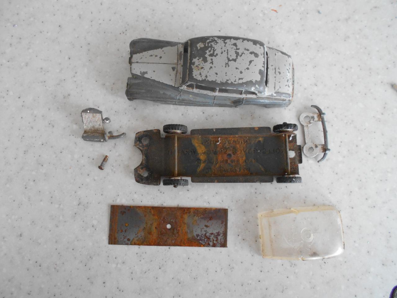 Restoration in progress. Very tatty model with broken front bumper-grill unit. Strip down was fairly straight forward with the exception of the front grille unit. It is held in place by a course threaded pin, see photograph, just twist it out. I decided to refinish it in deep red, only requires the detail work to complete./images/8.jpg)