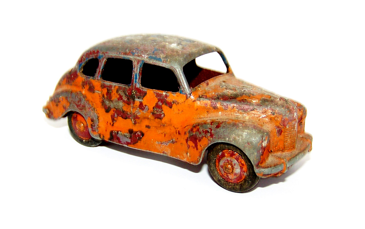 Over-painted but solid with one bent axle. Simple strip down and paint but the rear riveting pillars are a bit thin so drill carefully. This is a 40d as there is no DEVON printed under the roof and the printing on the base is small. Restored to near original colors.