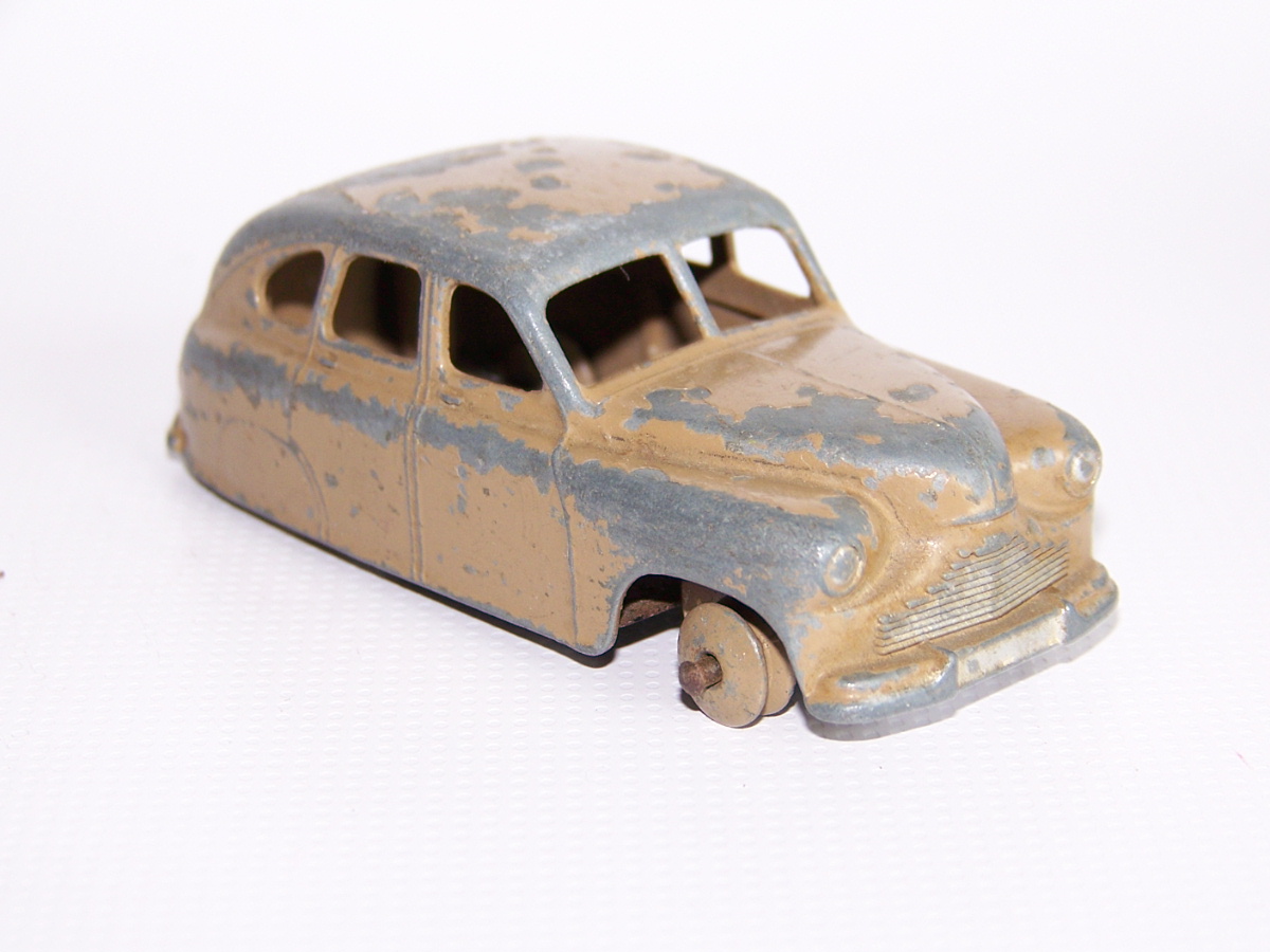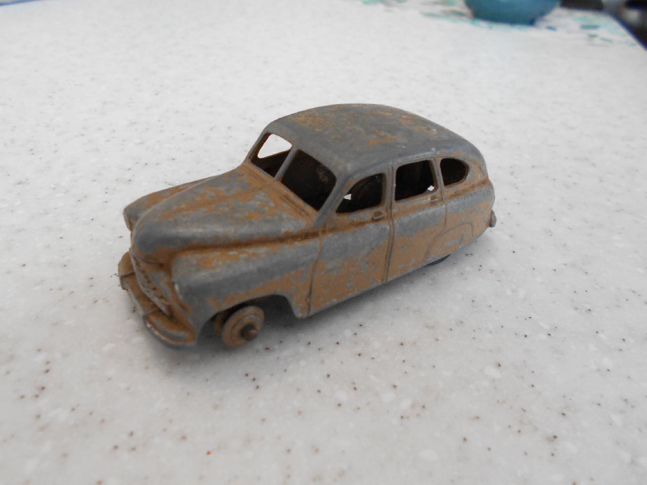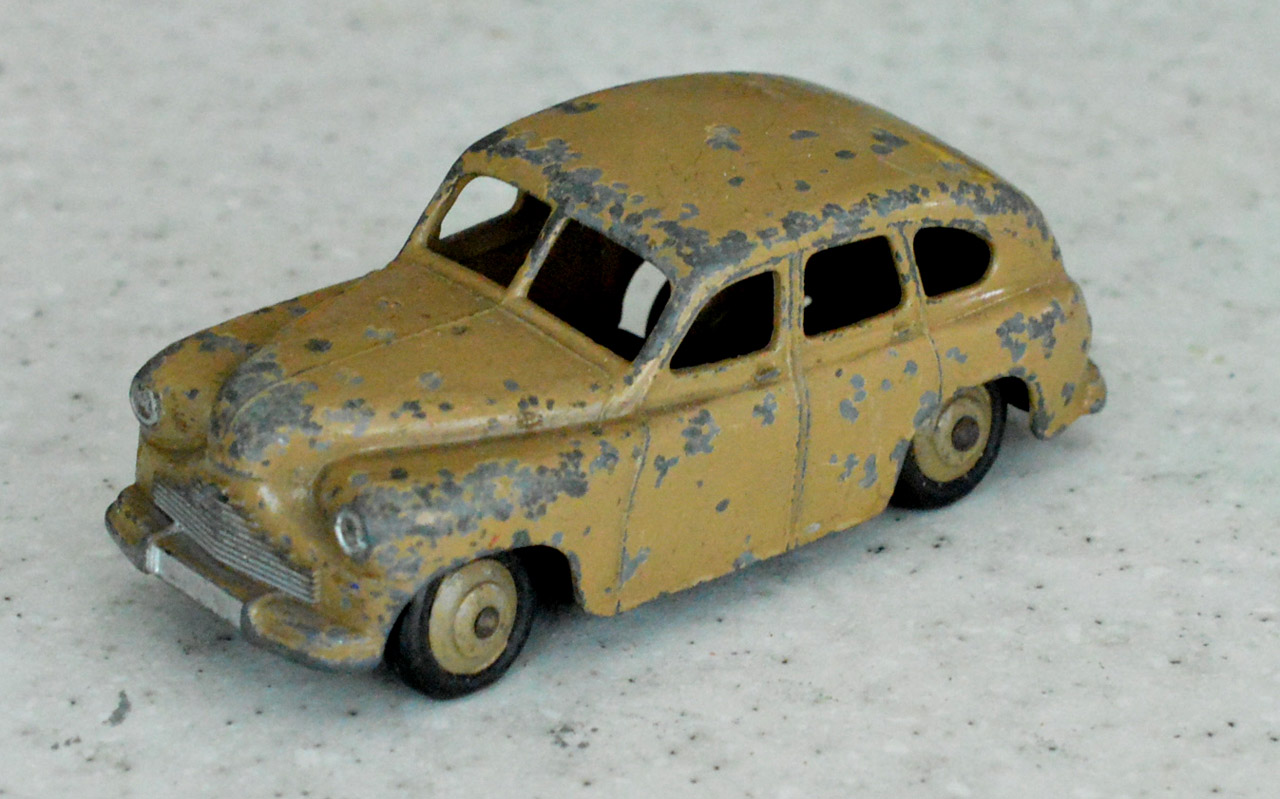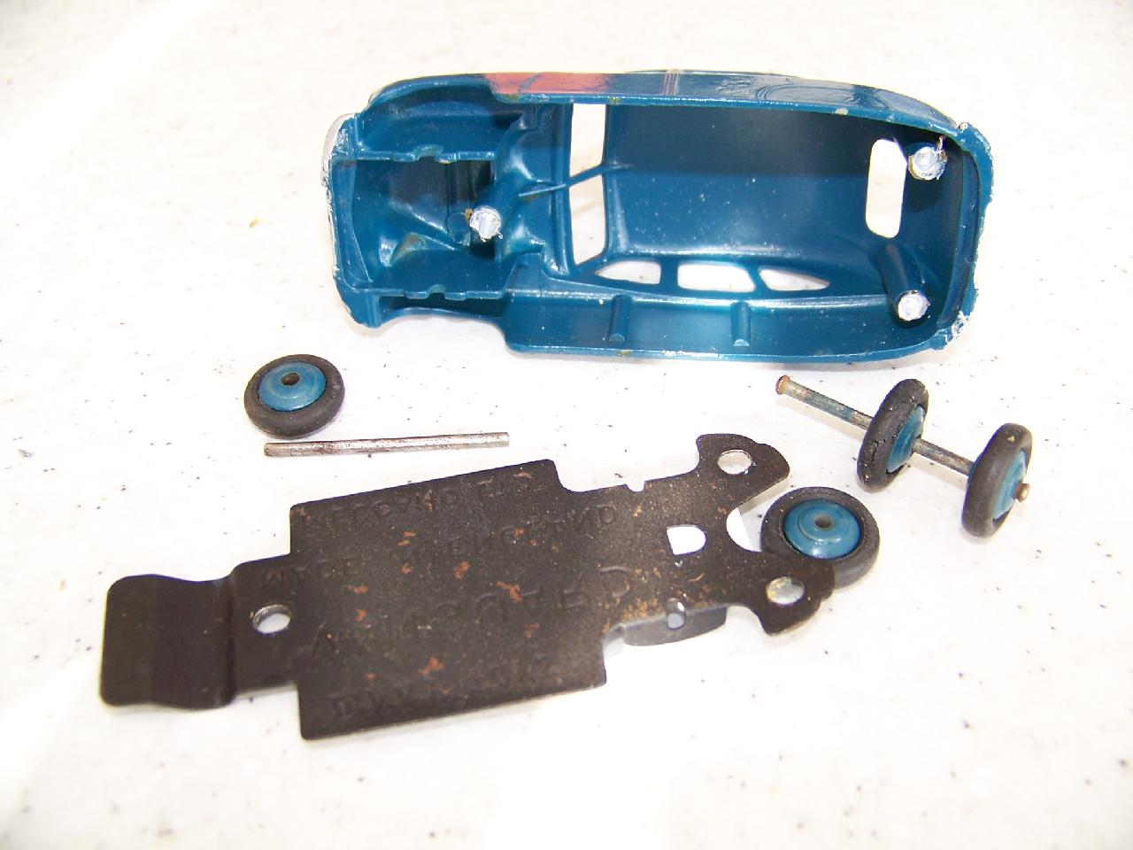 Ripe for restoration. Overpainted with blue over blue, just as you would have expected from this period but the Vanguard was never given such luxury. The original was beige but I decided to go for the light blue. Rusty chassis but otherwise the model did not require any repair. The earlier model had rear wheel arches as shown in the 1957 catalogue. The 1958 shows enclosed rear wheels./images/DSCN0527.jpg)