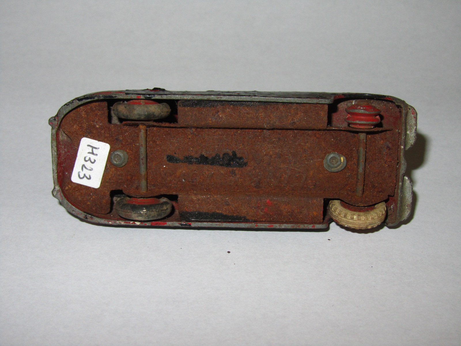 I guess this car must have been painted at least three times over the original red. The final coat was silver but there was yellow and black underneath. I am confused a little by the yellow as it was inside the car as well but after stripping the paint the only color left was red. Judge for yourself by the images as the yellow could not have easily got where it was without removing the base. There was a little damage to the left front fender and chassis and the roof surface was pitted. Straight forward strip and respray/images/1.jpg)