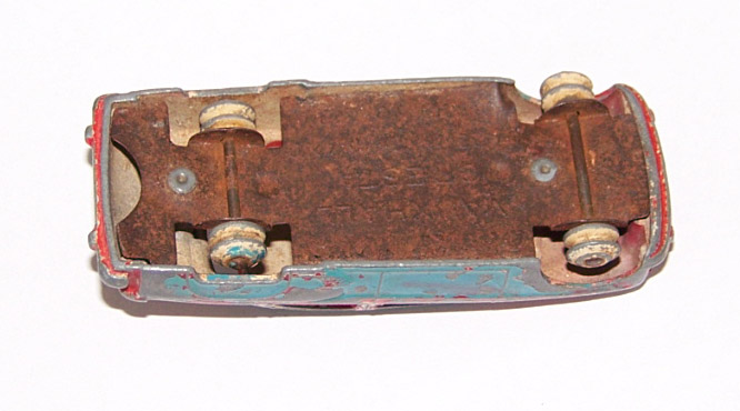 In very poor condition, overpainted and huge paint loss, rusty chassis, windscreen pillar missing, bent roof. Chassis removed, paint stripped and note the repair to the windscreen pillar. Groves were cut where the pillar was attached and a small wire (telephone wire) was shaped and held in place with metal based epoxy resin. The wire is there to reinforce the repair and gives something to hang the epoxy resin on. Several coats are applied and left to dry overnight before filing into shape. Painted and ready for display together with two others purchased as part of a lot./images/Vauxhall Cresta 164 Windshield Pillar Repair.jpg)