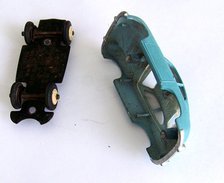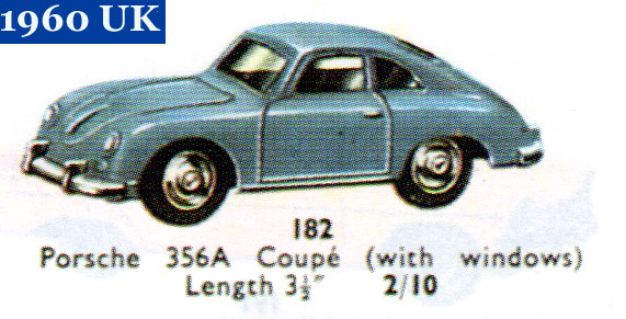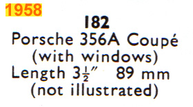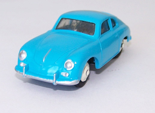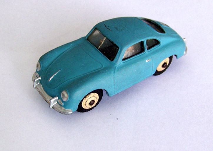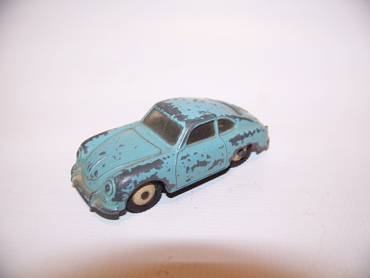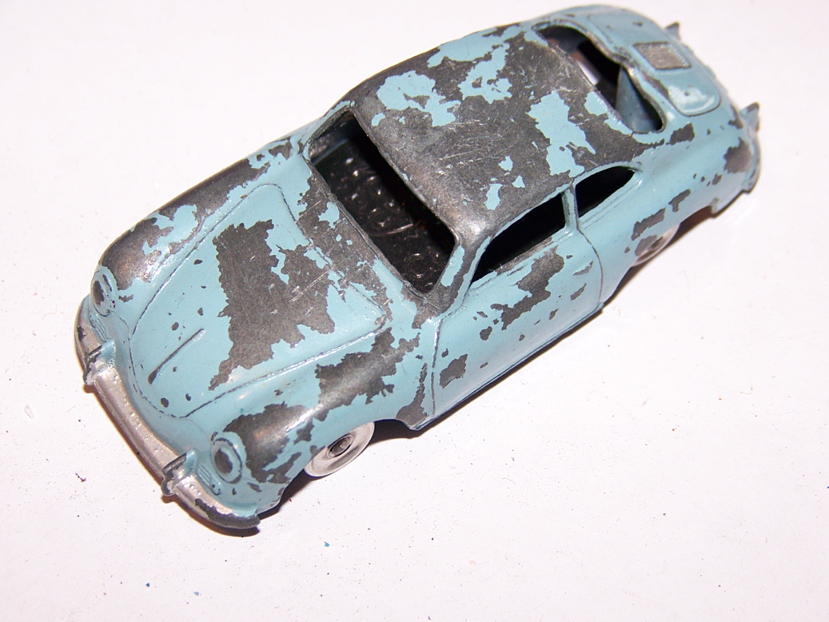 A repainted model with a detached base. The window glass is cracked. Overall in not bad condition but would look better with a good paint job. The wheels and axles were left attached to the chassis and masked while re-sprayed. The window glass was removed from the body shell while the paint was stripped and sprayed. The window glass will require attention at some point but I will have to experiment with various methods of restoration, but for now it will remain loosely in place. The finished job was completed with silvering on the bumpers and trim and a little red to the rear lights./images/182 Porsche 356A Coupe 1.jpg)
