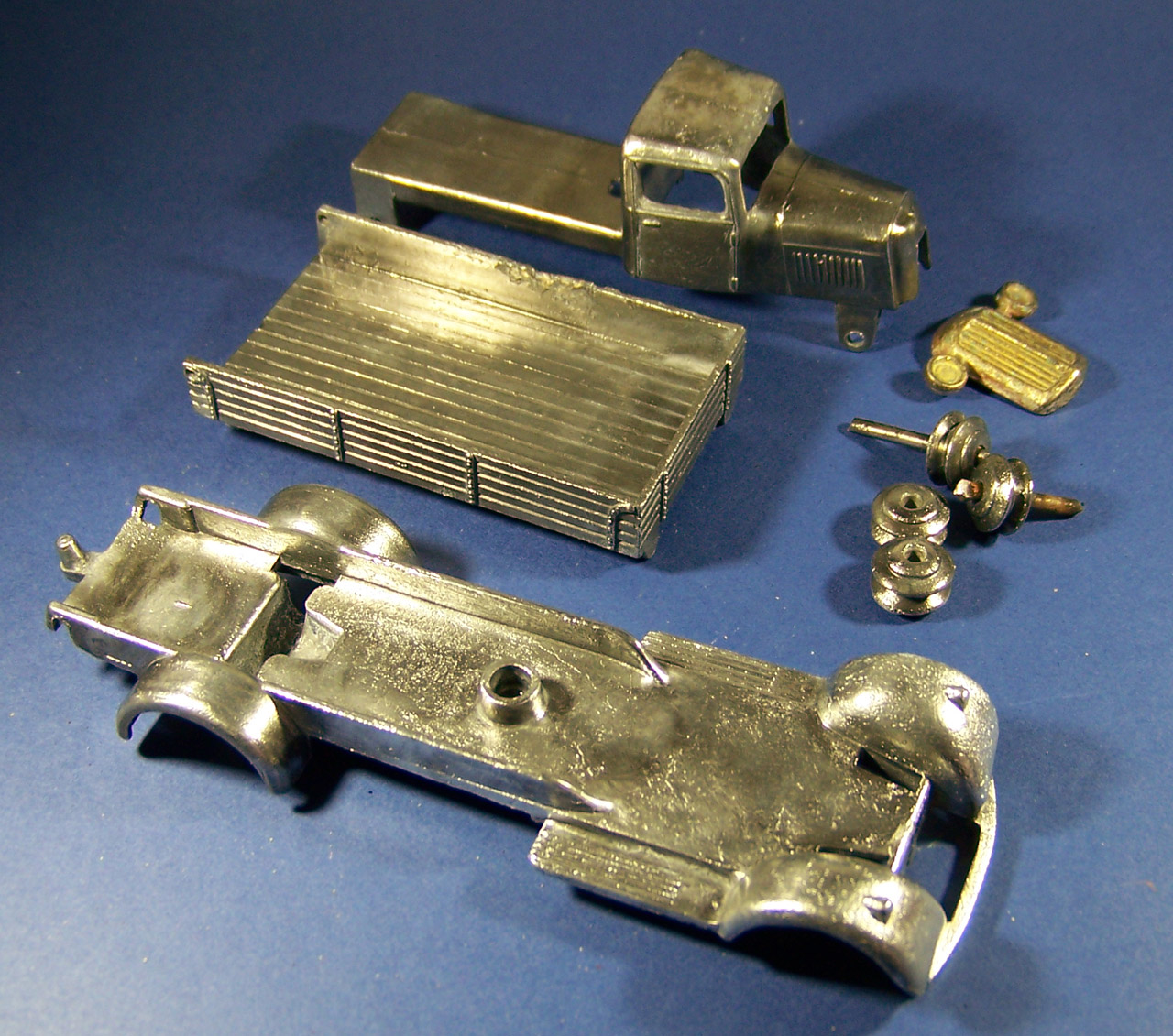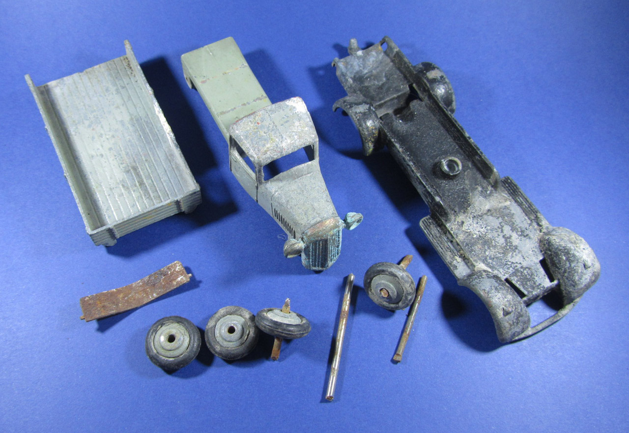 Corroded but complete with hand made rear flap. Wheels corroded onto the axles. Ripe for restoration. Grille removed, axles cut and all paint removed. The corrosion was minimal, so 2 small repairs./images/1.jpg)