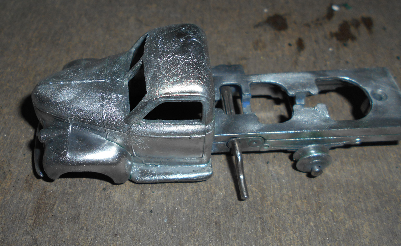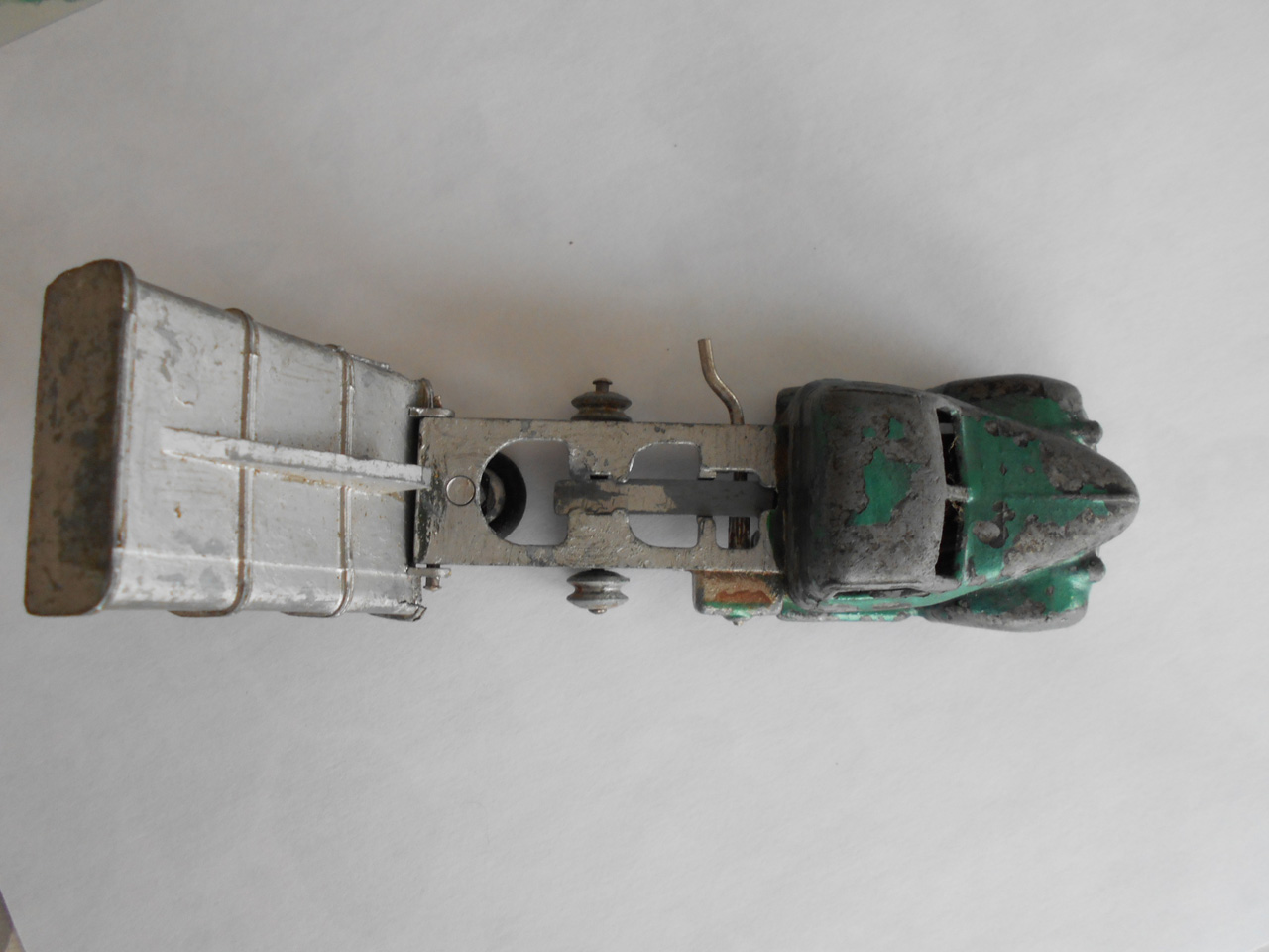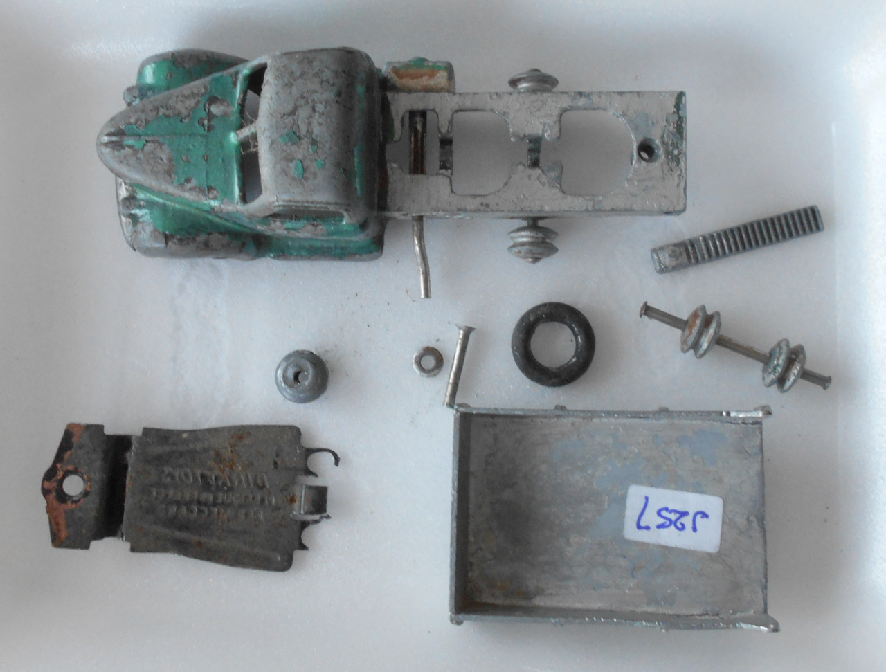 A total wreck. Broken lift mechanism, no tailboard, twisted bed and badly chipped paint. The model was stripped down and the lifting rack repaired. The bed was straightened and the whole lot stripped of paint. A full respray and reassembly with a 3D printed replacement tailgate. A new box was created using the period type box format. It is noted that this was only supplied to shops in a trade box./images/1.jpg)