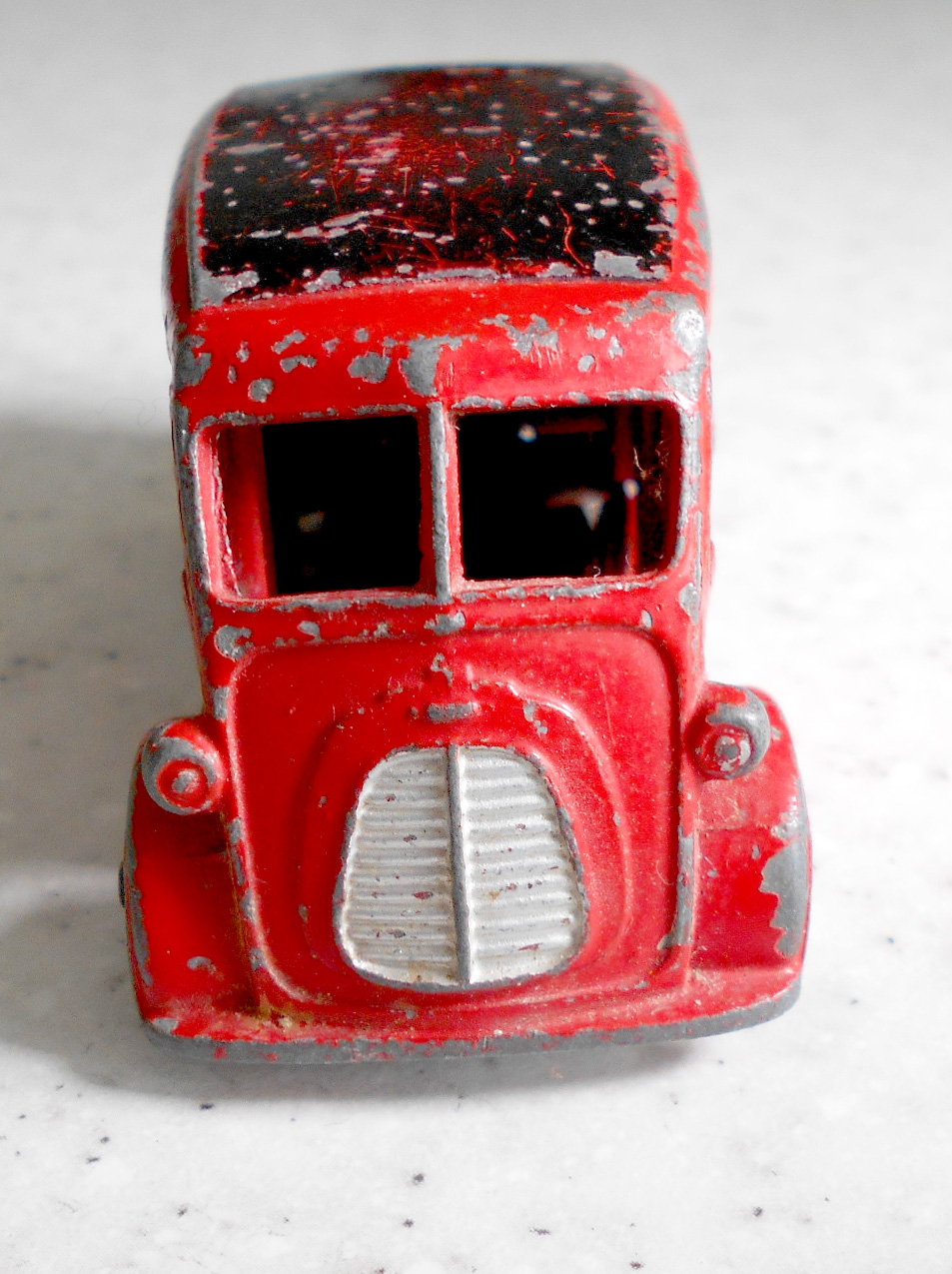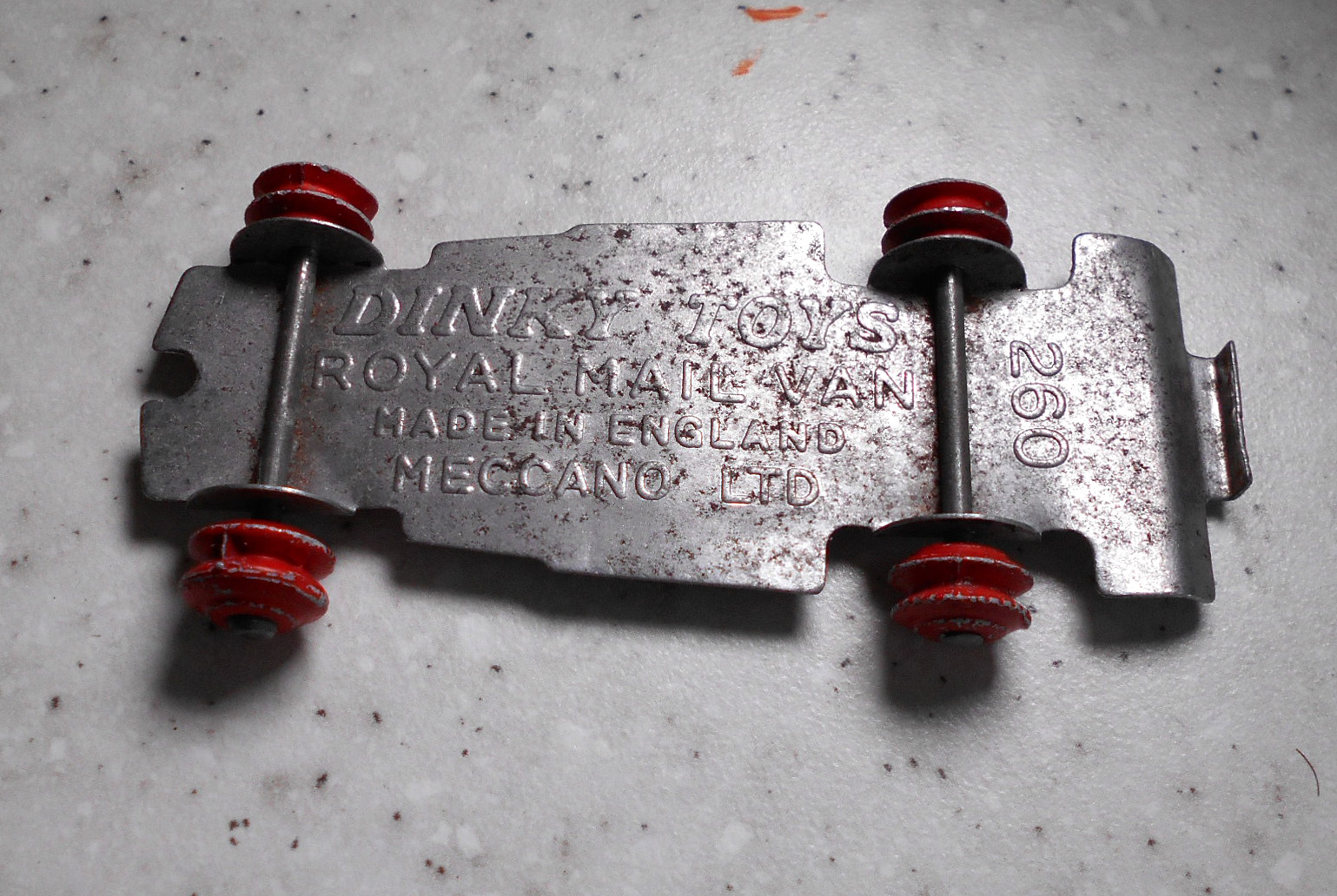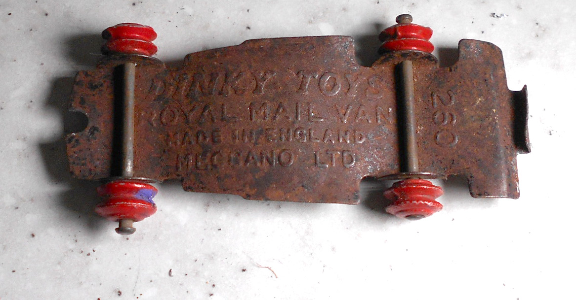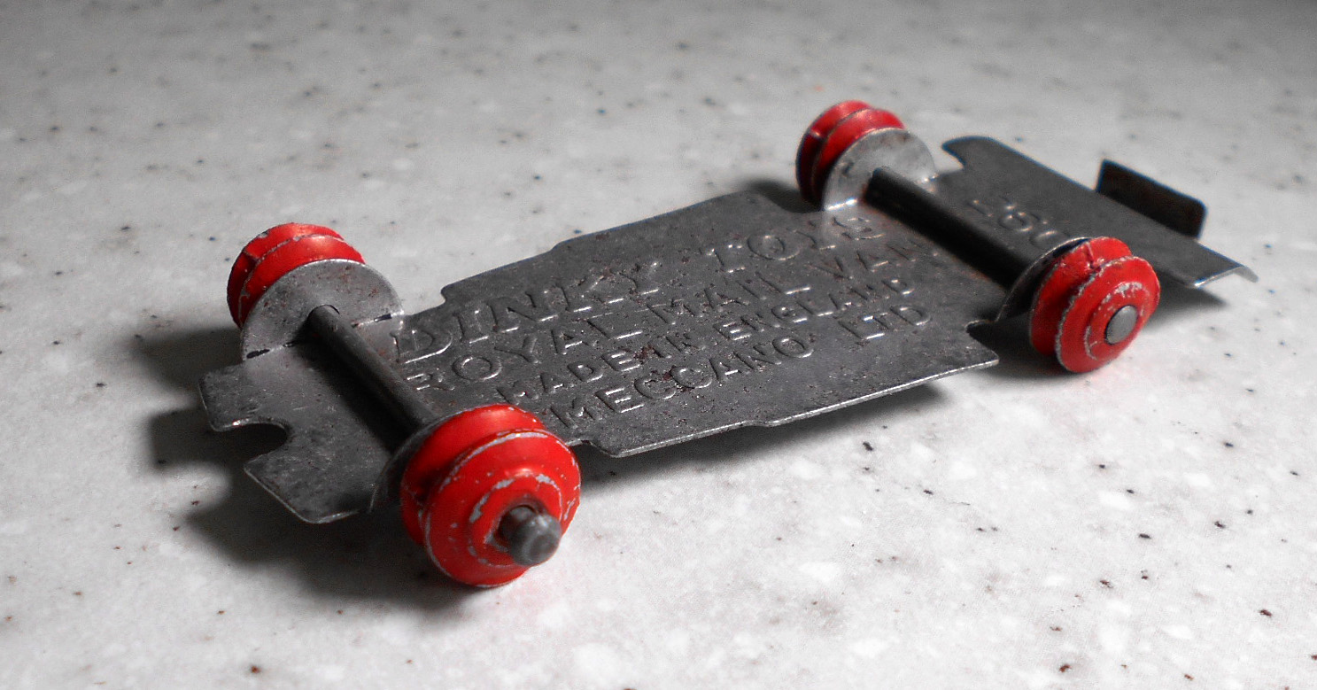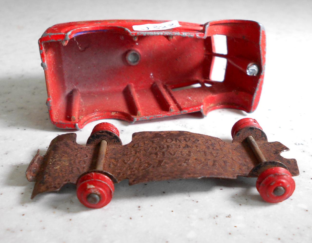 Sometimes you have to decide if the model requires a repair or complete renovation. If the model is not rare but the paintwork is three quarters good, maybe it should just be cleaned. This one had not bad paint, fair decals, but a rusty chassis. So I decided to repair just the chassis. Removal is the regular procedure and the bonus is that there is just one rivet. The chassis was rusty and twisted. An overnight soak in vinegar and a brush with comet cleaned things up very well. Light use of a soft hammer and some twisting got the chassis in fair shape. I could have removed the axles but I wanted to keep the model as original as possible. Mask the wheels and two coats of gloss black finished this project. The body was given a good clean and made it quite presentable./images/1.jpg)