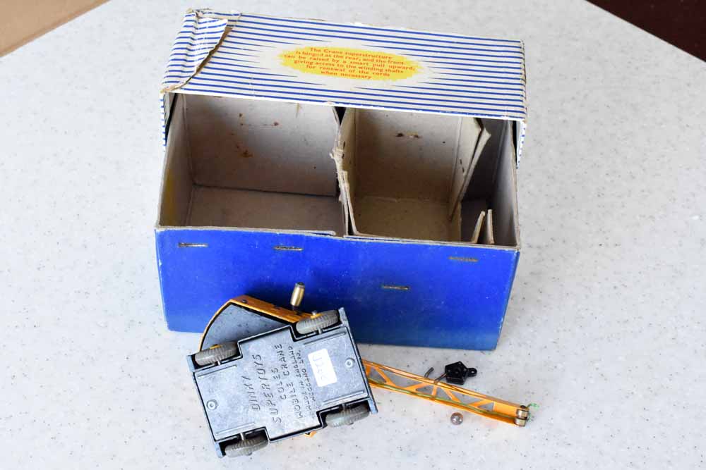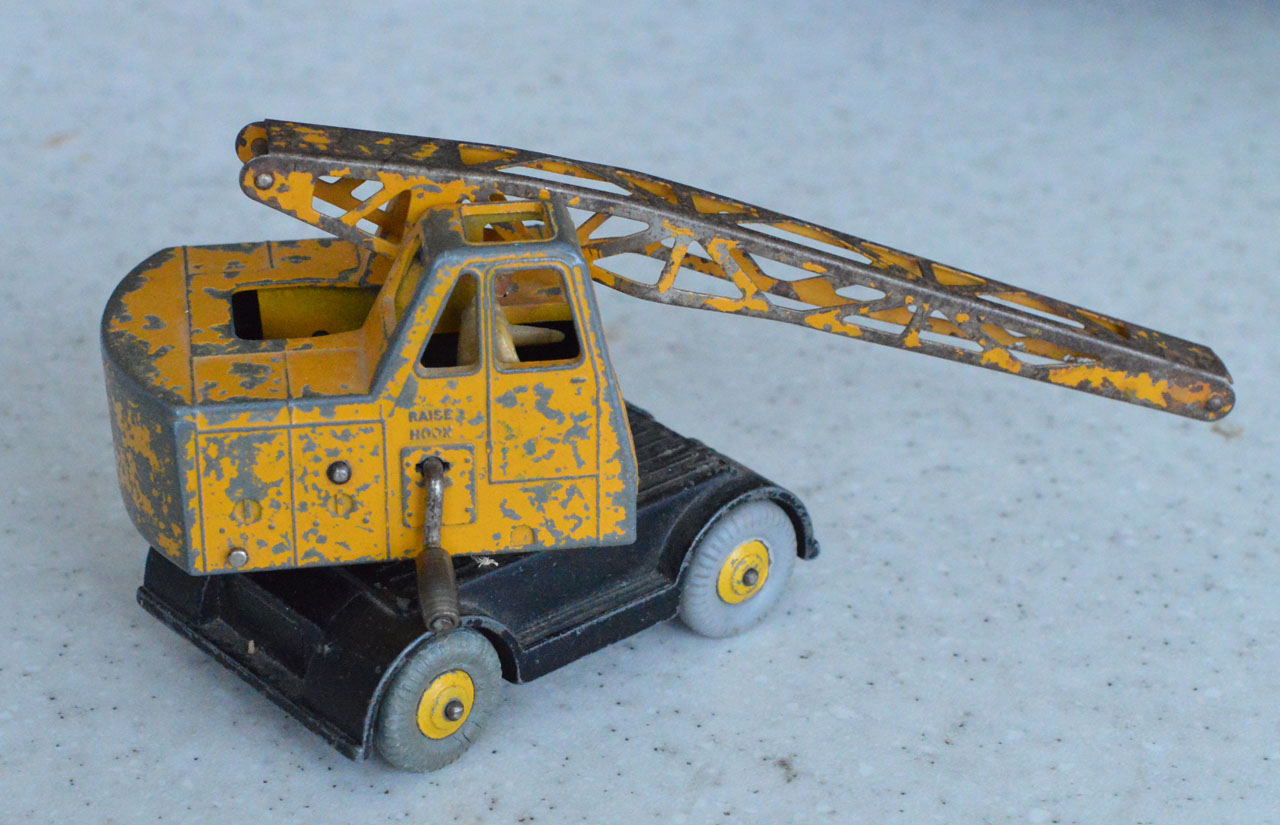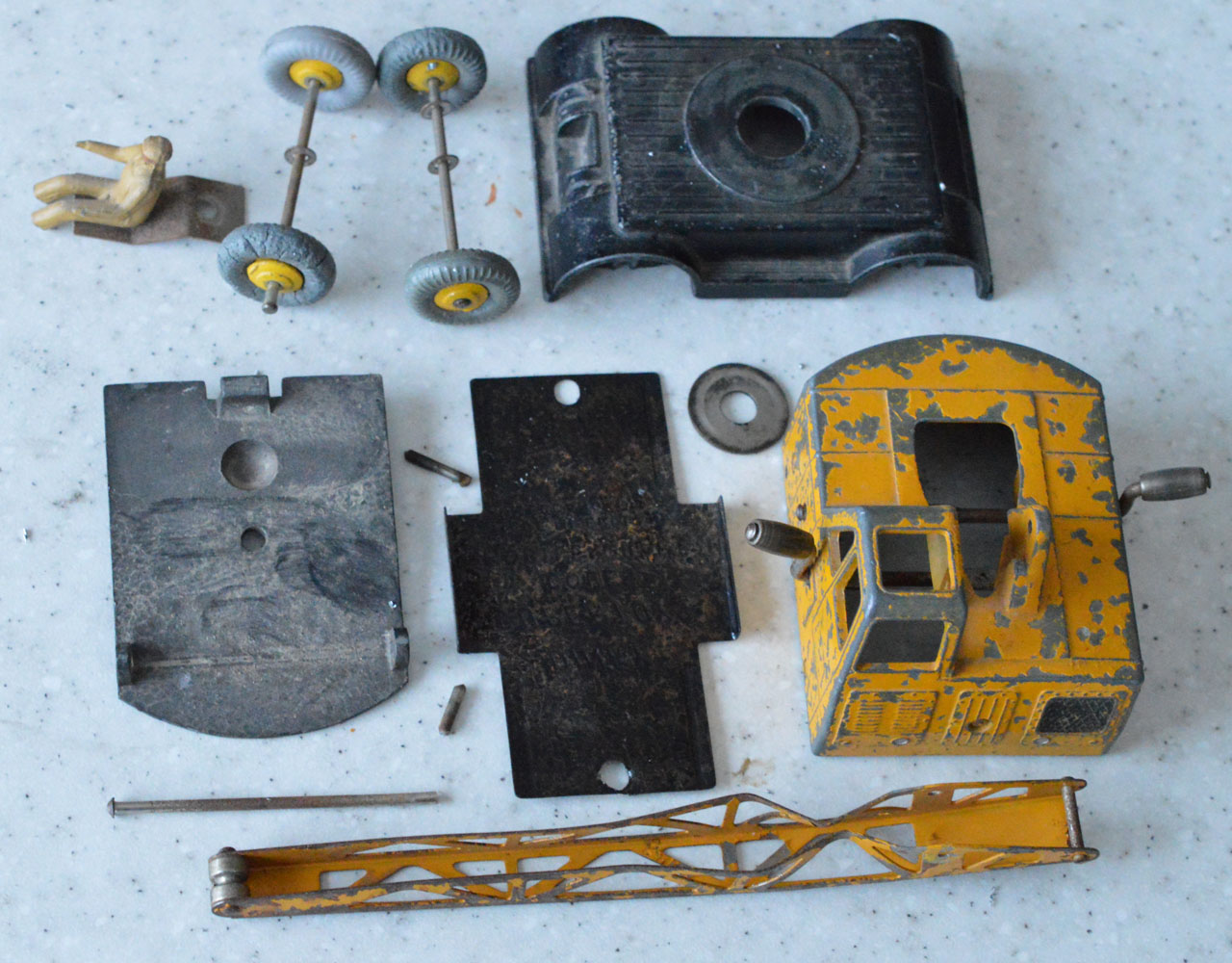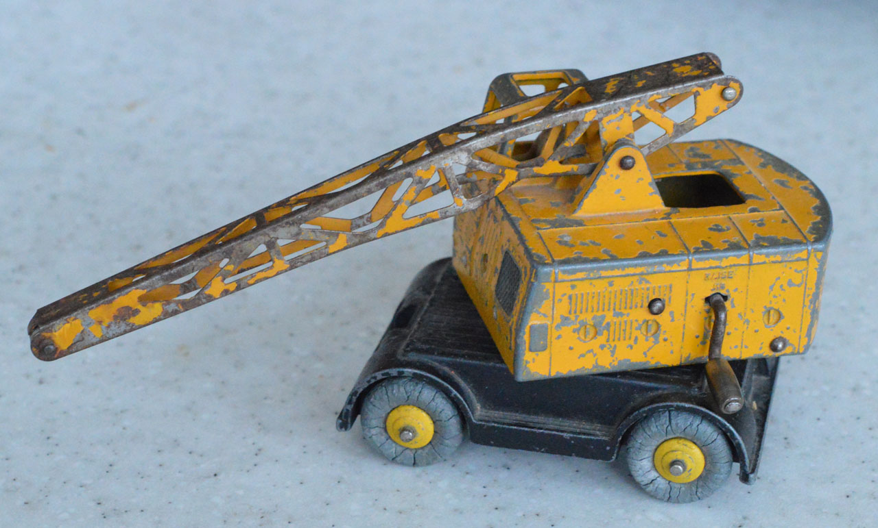 Not a bad model but in need of some restoration and repair. Strip down was fairly straight forward with the exception of the winding mechanism. I decided to go for broke and removed the winders by carefully reshaping the end until it slid out. There should be enough metal to tap back into shape. Fully stripped down, including the jib pulley. A little more work but it will look better. Await warmer weather to respray. Well that was quite an experience, it is finished as far as I want to go. Far too fiddly to replace the shafts that hold the jib and pulleys in place. Far too easy to damage and chip the paint. Otherwise not a bad job./images/1.jpg)